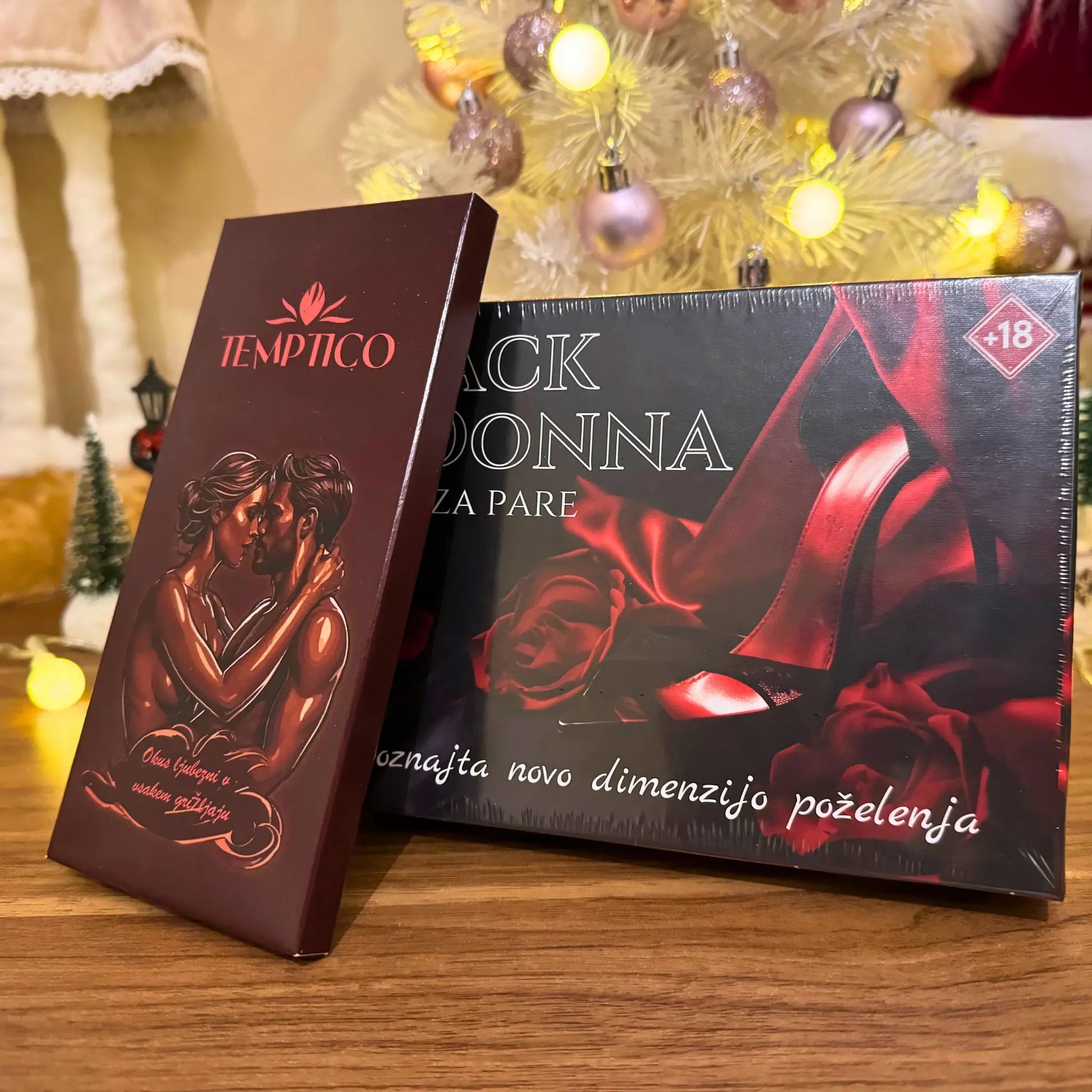 - Temptico čokolada (100 g) – Premium čokolada s skrbno izbranimi sestavinami, ki vzbudijo željo in toplino.